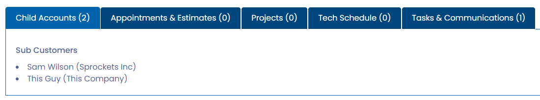 Parent accounts get an additional Tab in the center of the Customer Information screen displaying all the child accounts.