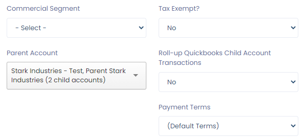You'll see in the above example, that this Child Account would be underneath Stark Industries. You'll also note, that Stark Industries already has 2 Children Accounts underneath it, as designated by the number of accounts listed in the brackets.