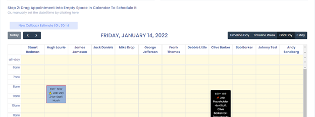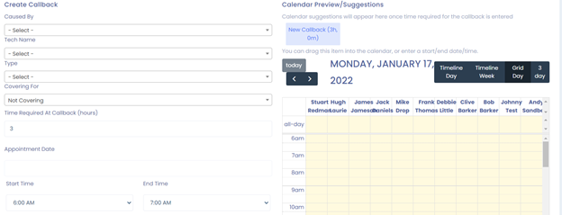 Note that in the upper right-hand side of the screen, the Callback is assigned